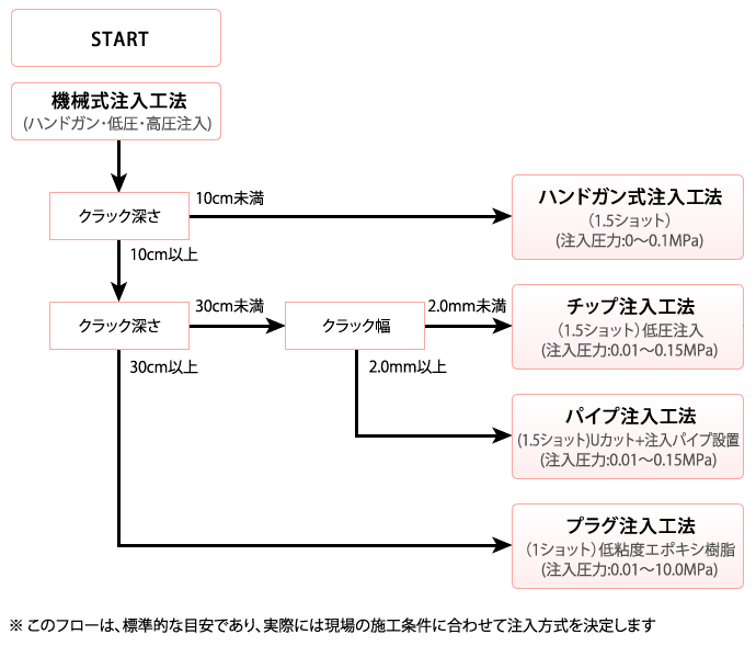 クラックの状態により、低圧から高圧まで、あるいは1.5ショット、1ショット等多彩な注入方式を選定することができます。