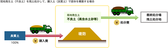 残土処分費:1,500円/m3、良質土購入費:3,000円/m3